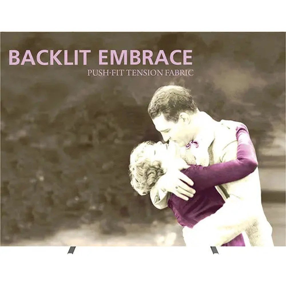 Approximate Size for Straight Graphic: 147.88”w x 88.25”h (+ bleed) This display comes with OCX Wheeled Trade Show Shipping Case Graphics are double-sided, comes with Hardware and Light Kit Product Specifications #1 IS_Embrace-Backlit.pdf G…