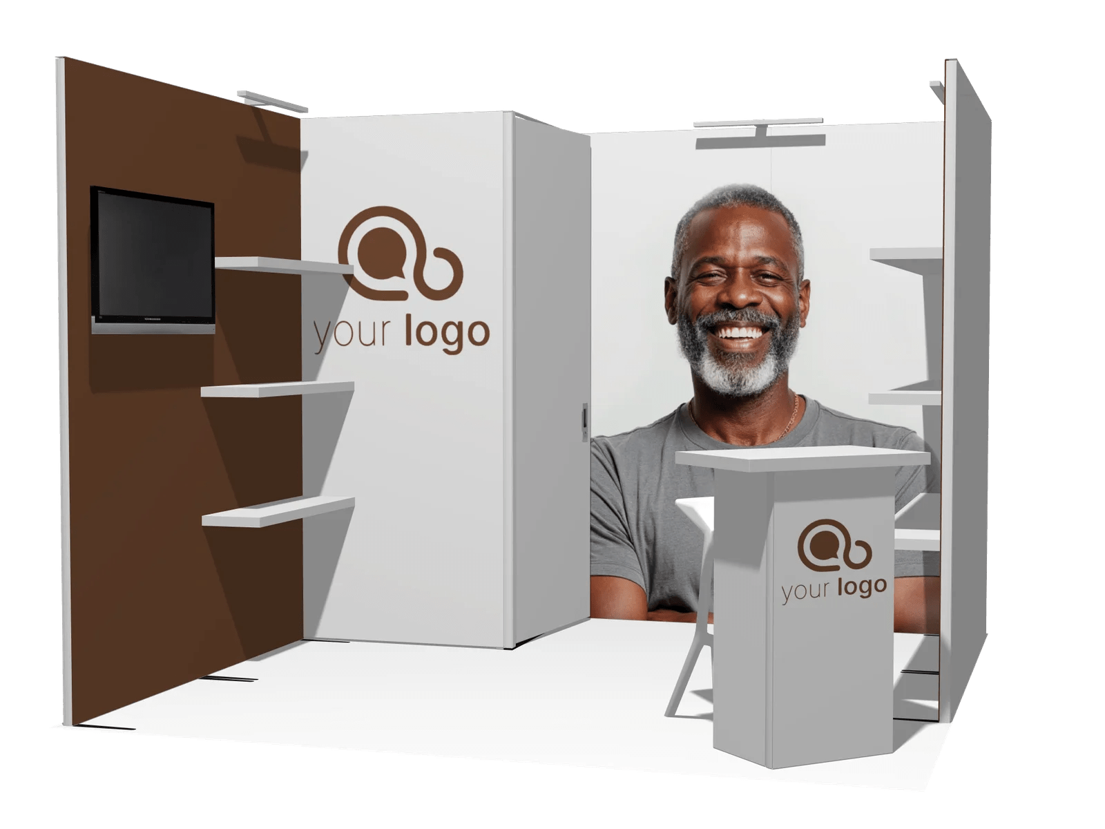 Ships in 2 Weeks from Graphics Approval Get this booth 100% Modular Construction Multiple Configurations Modularity Samples from your selection: Pac
