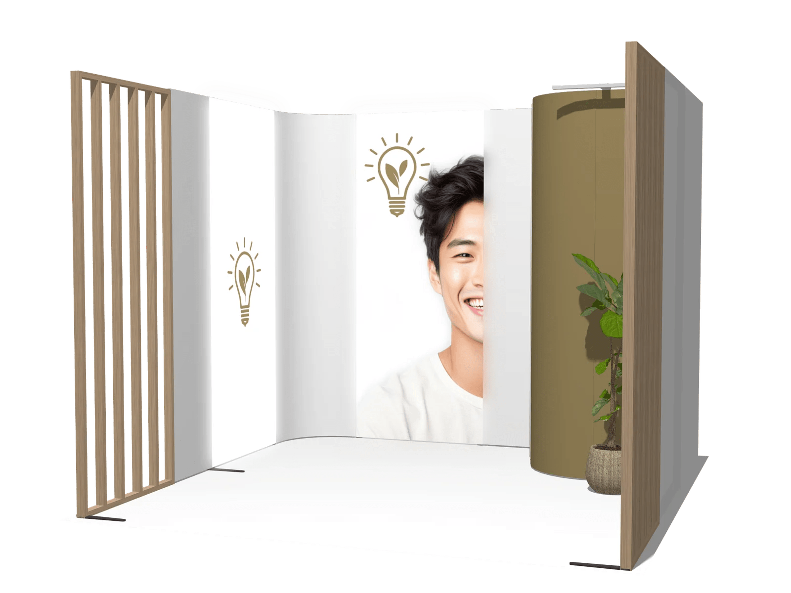 Ships in 2 Weeks from Graphics Approval Get this booth 100% Modular Construction Multiple Configurations Modularity Samples from your selection: Pac