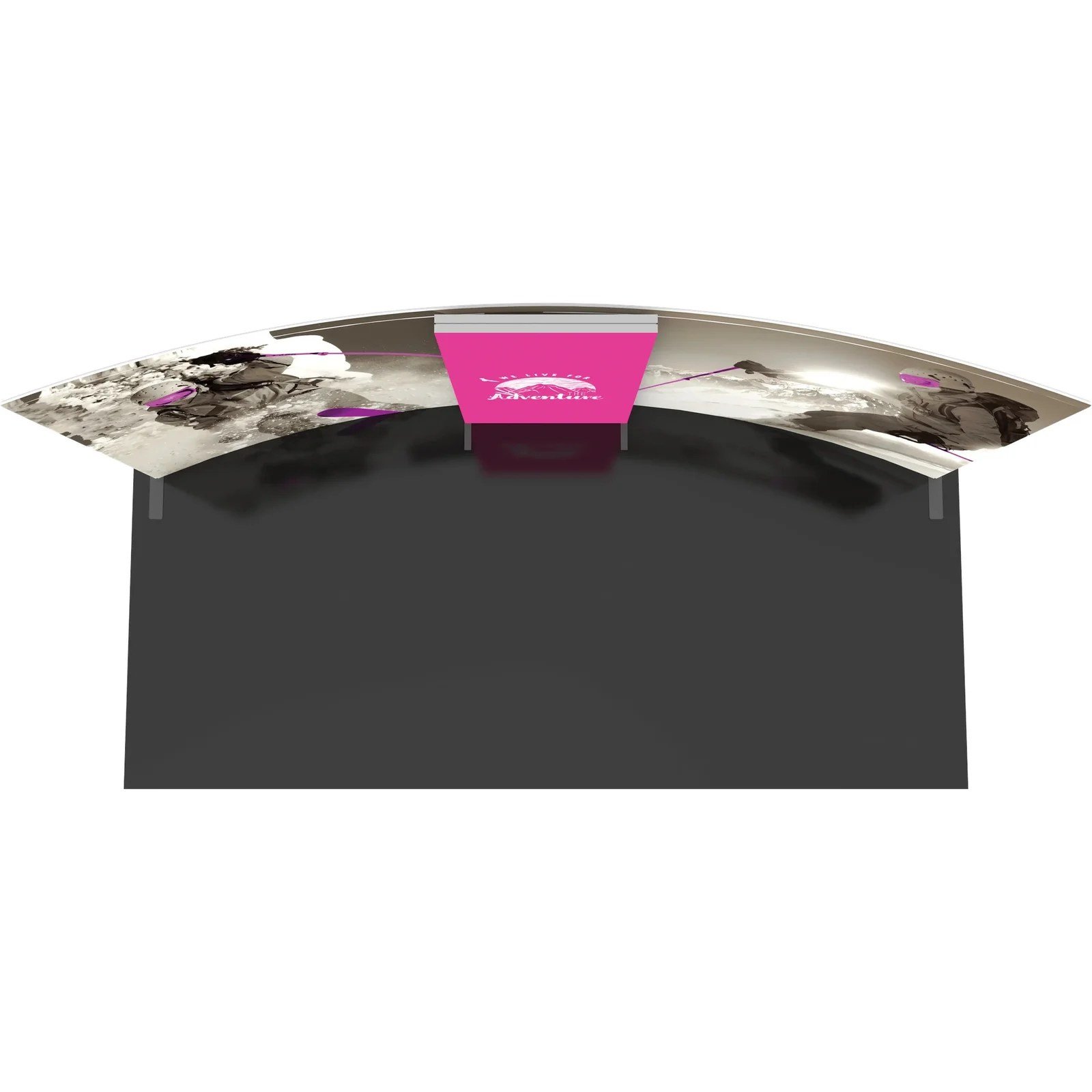 – Center wall features extrusion frame, LED lights and push-fit fabric graphics