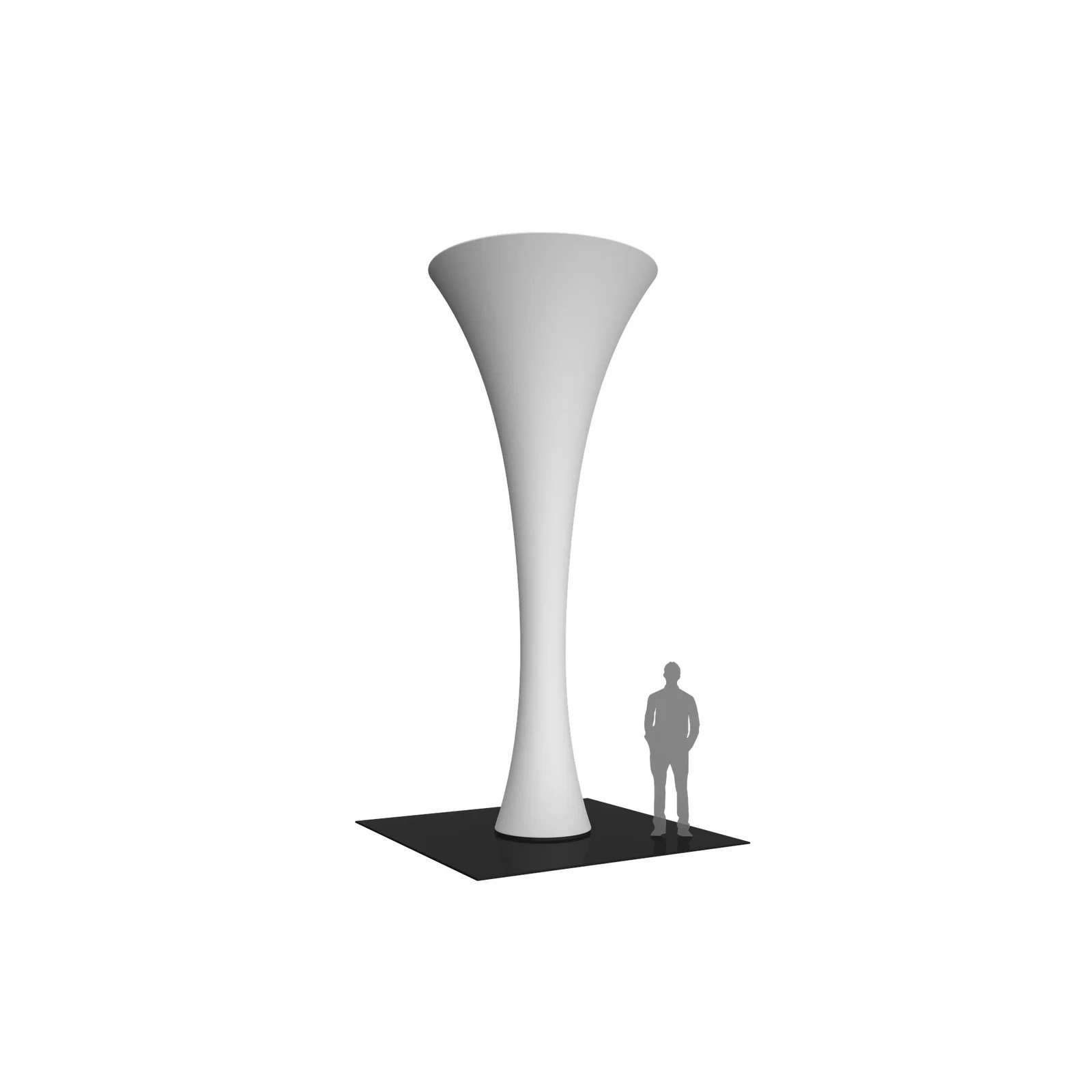 The 20ft Formulate® Fabric Funnel 01 can transform any environment through form, fabric and lighting. Formulate Funnel 01 measures 20ft tall, and features a heavy-duty wooden base and silver powder coated truss interior to create a dynamic, towering structure that commands attention. Fabric graphics feature a zipper at the top and a silicone edge at the bottom for easy assembly. Accent LED light kits are not included, but can be purchased a la carte to add a glow within the funnel. Funnel 01 packs down into two wheeled OCH2 cases for easy storage and transport.