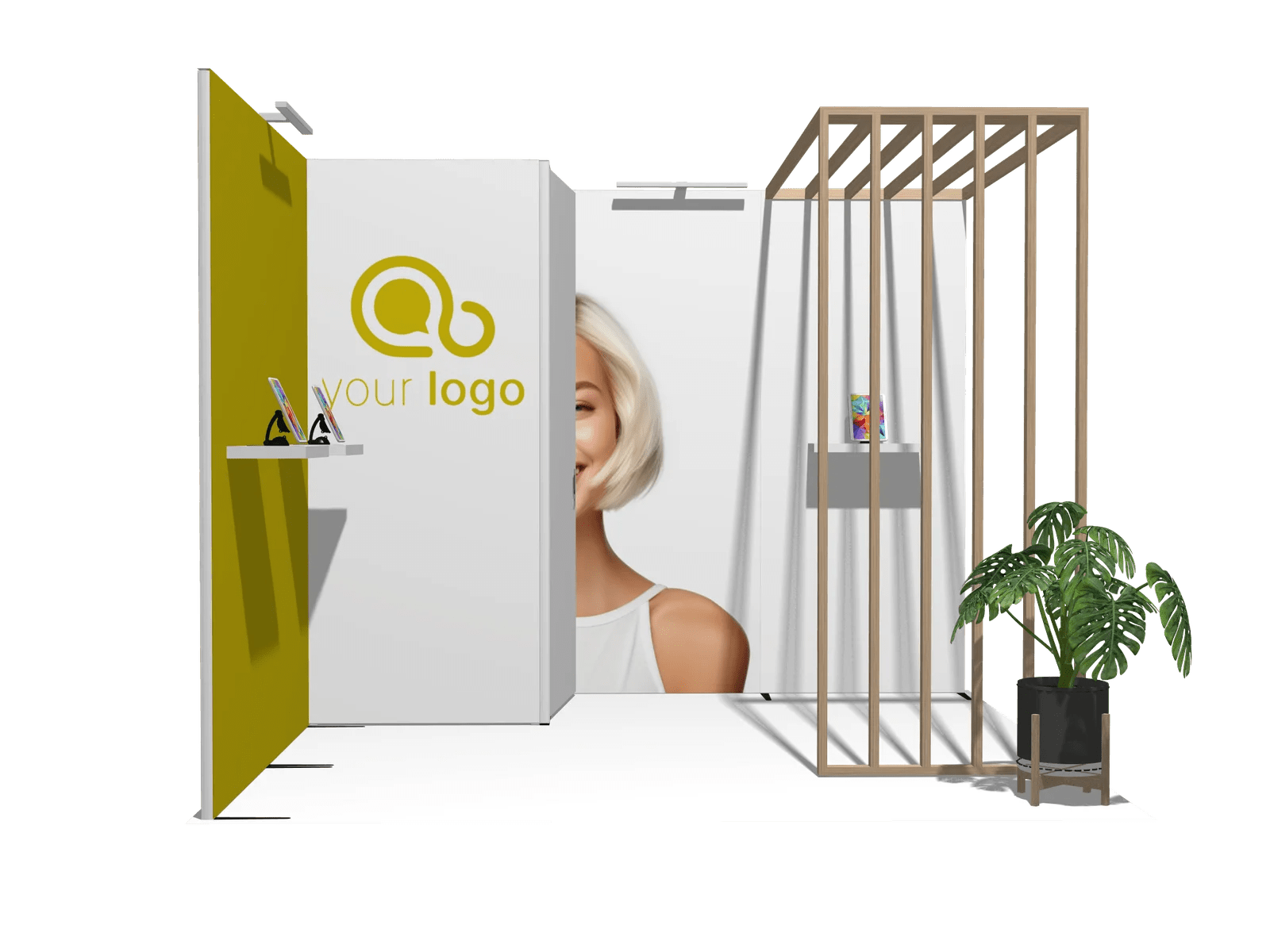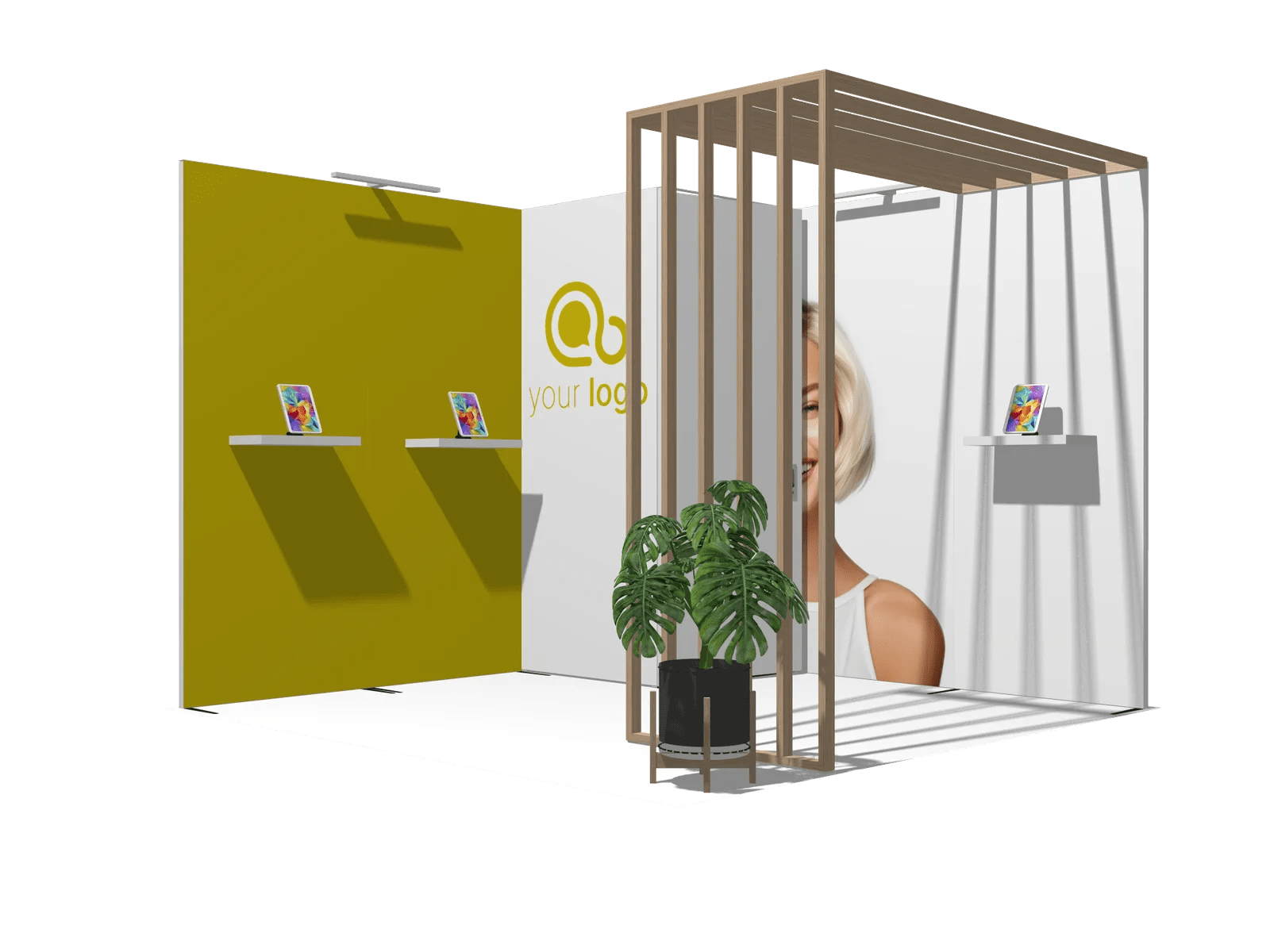 This exhibit is built on a fully modular system, allowing components to be reused, reconfigured, or expanded as exhibit needs evolve. The L-shaped layout introduces natural structure within a limited area, helping define presentation zones while maintaining an open, approachable feel. This makes the booth well suited for focused conversations, product showcases, lead capture, or controlled demonstrations where space efficiency is critical.