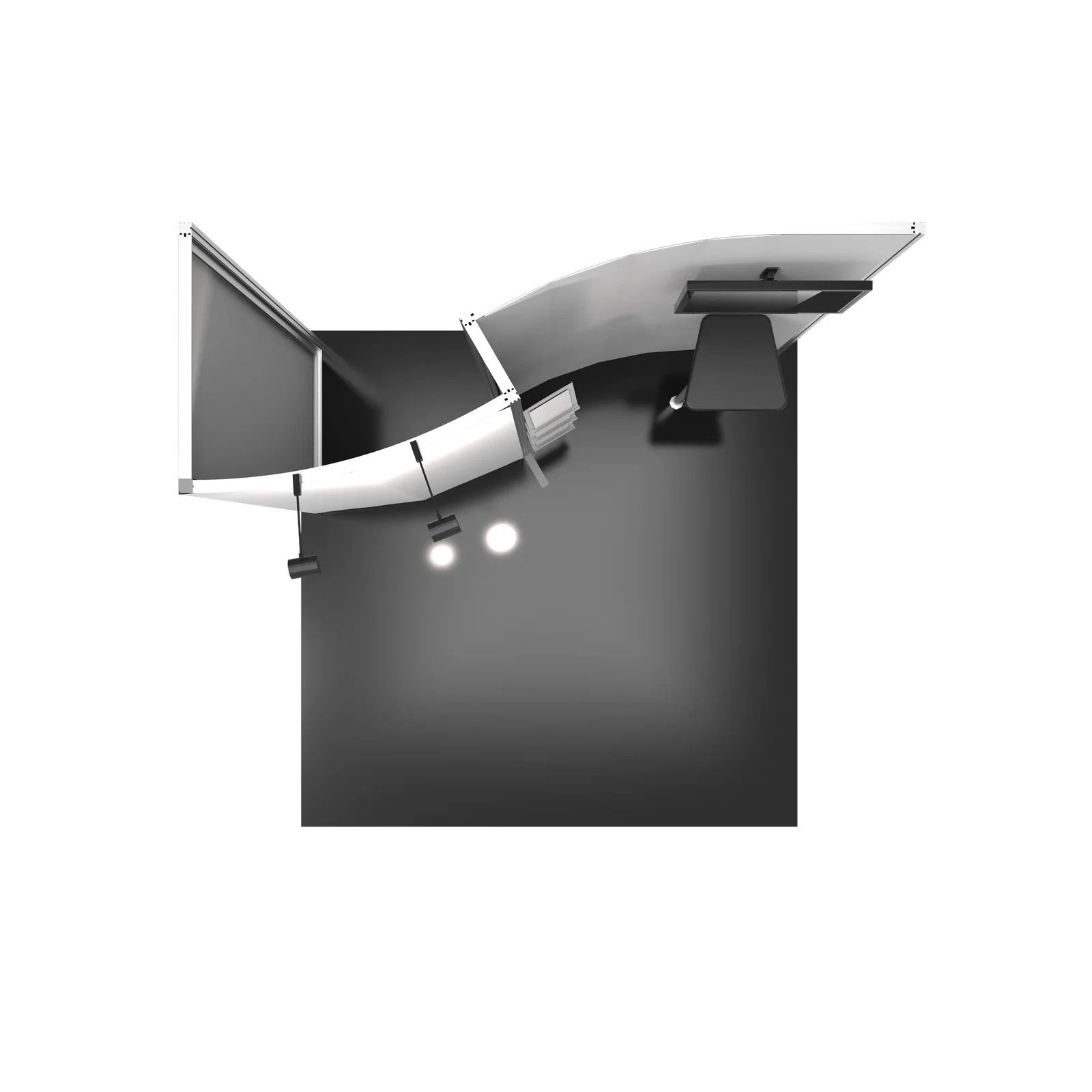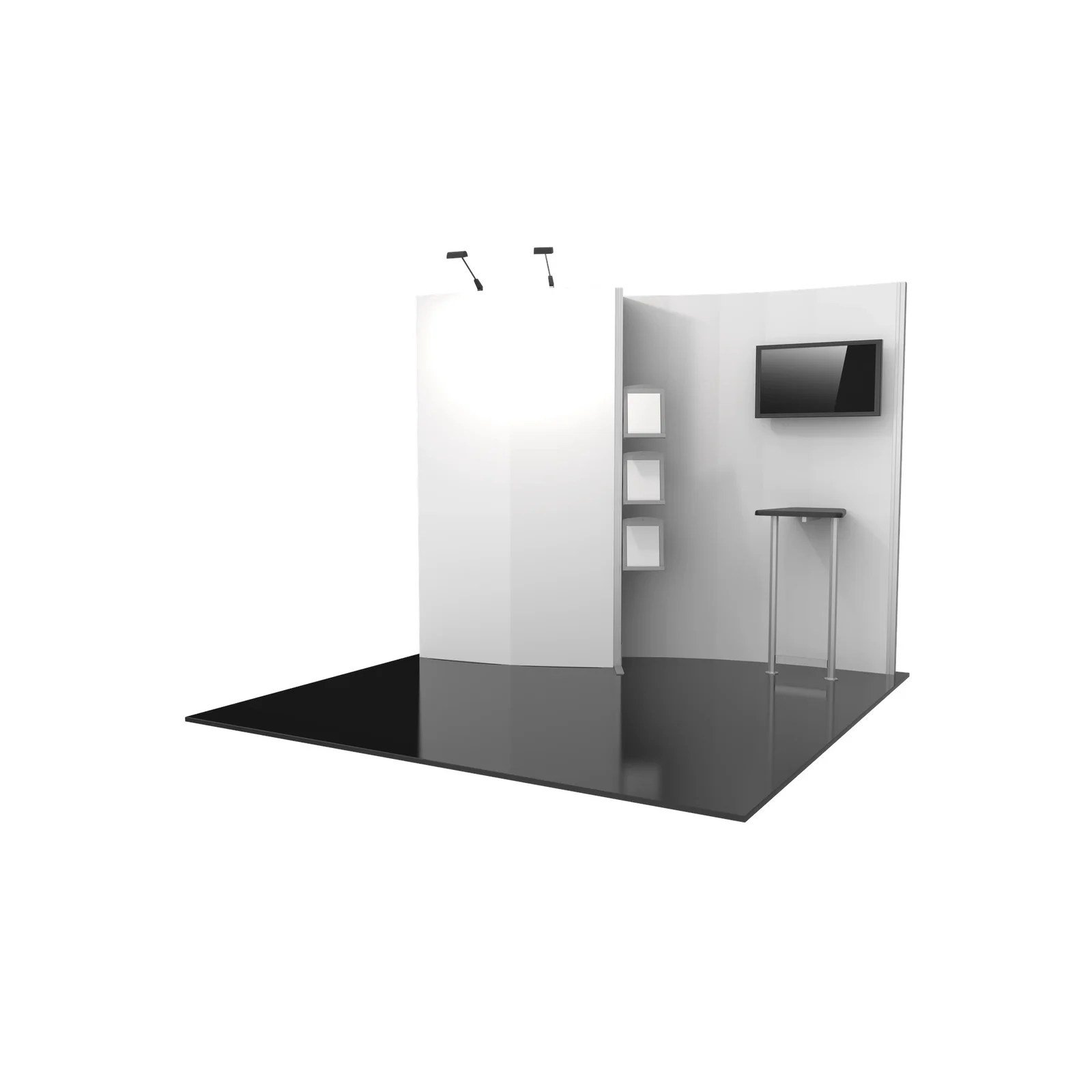 Hybrid Pro™ Modular Kit 02 is an off-the-shelf 10ft x 10ft display kit that creates a stunning display solution. Kit 02 features a monitor mount, literature racks, back wall tables and LED display lighting, combined with durable aluminum frames and high quality graphics. Customize with additional elements to create a truly remarkable display that leaves a lasting impact.
