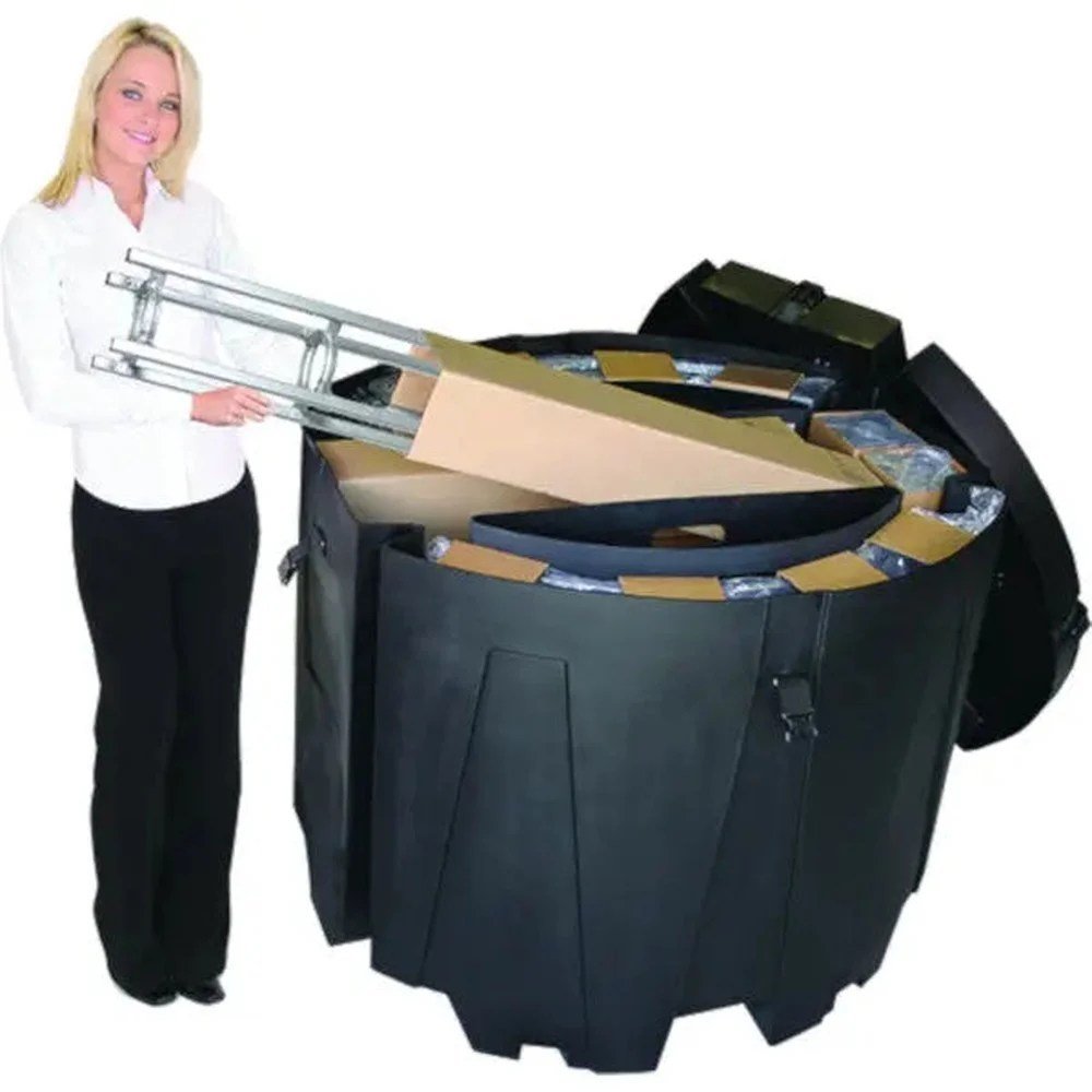 The OCT Round Shipping Container is designed to handle national & international exhibit freight shipments. Used to ship Curved Orbital Truss displays, as well as many other exhibit materials, this case offers maximum protection and is stack-able.