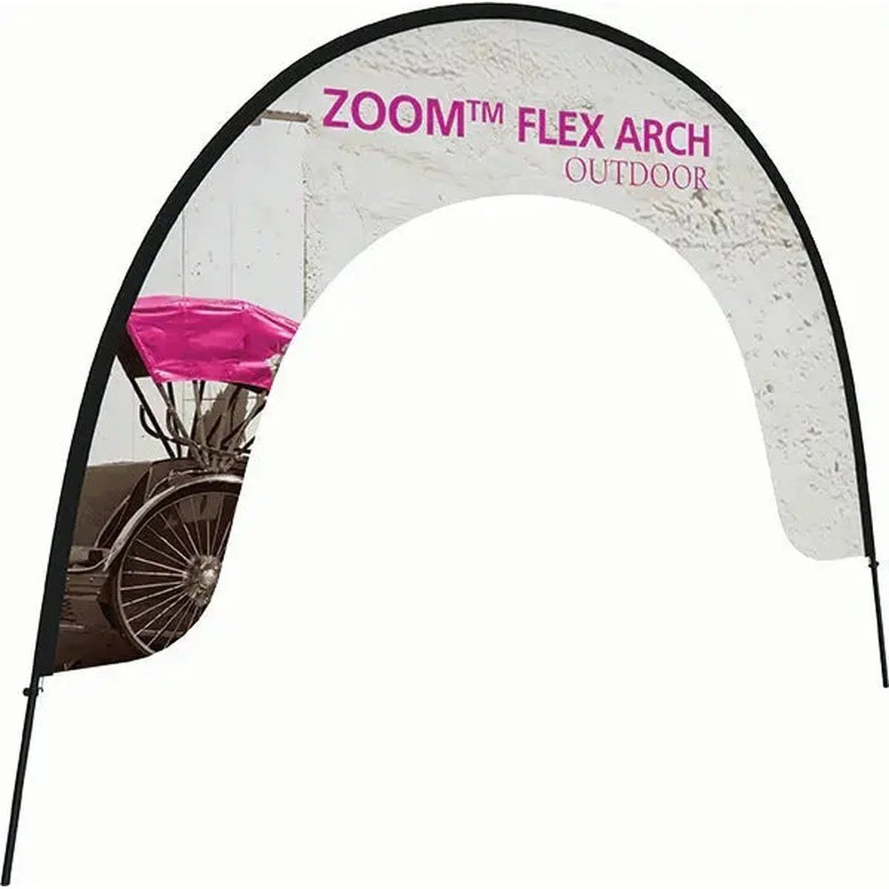 The Zoom Flex Arch is a simple effective Outdoor advertising tool for your outdoor events. Tension poles with ground stakes create the structure for the printed weather resistant graphics. Sinple fast set up and just 5 pounds, Soft carry bag incuded. Great for Sports events, fairs or festivals, car dealerships and more!
