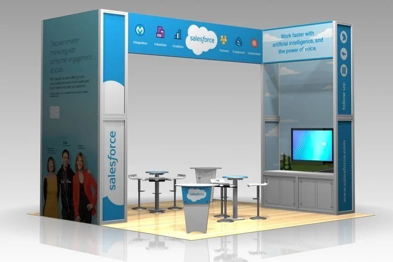 Are you gearing up for an exhibition or convention in vibrant Las Vegas? If so, we have something special for you! Let us introduce you to the Salesforce Custom Modular Display, a standout choice for your booth. This impressive 20ft x 20ft display is perfectly crafted to captivate your audience and showcase your brand in the best light.